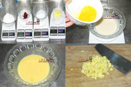 1、根据原料表中的分量,称好各种干料~